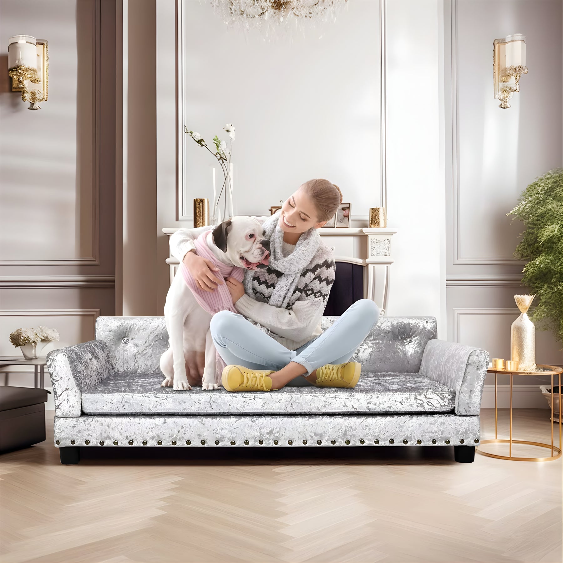 - Deluxe Dutch Velvet Upholstery – Rich, soft-touch velvet with a subtle sheen. Looks refined in any room. Durable enough to handle claws, fur, and everyday life with dogs.